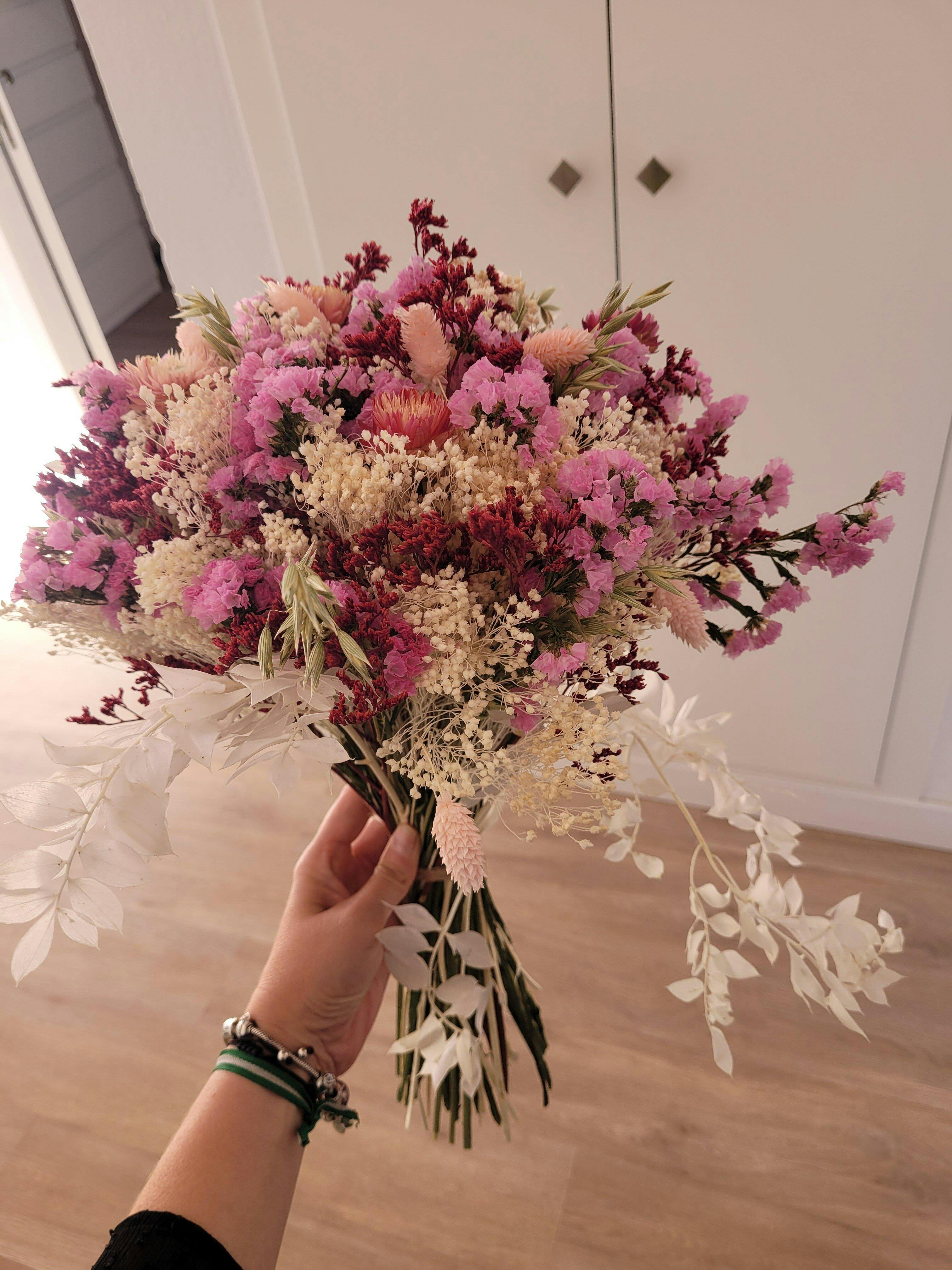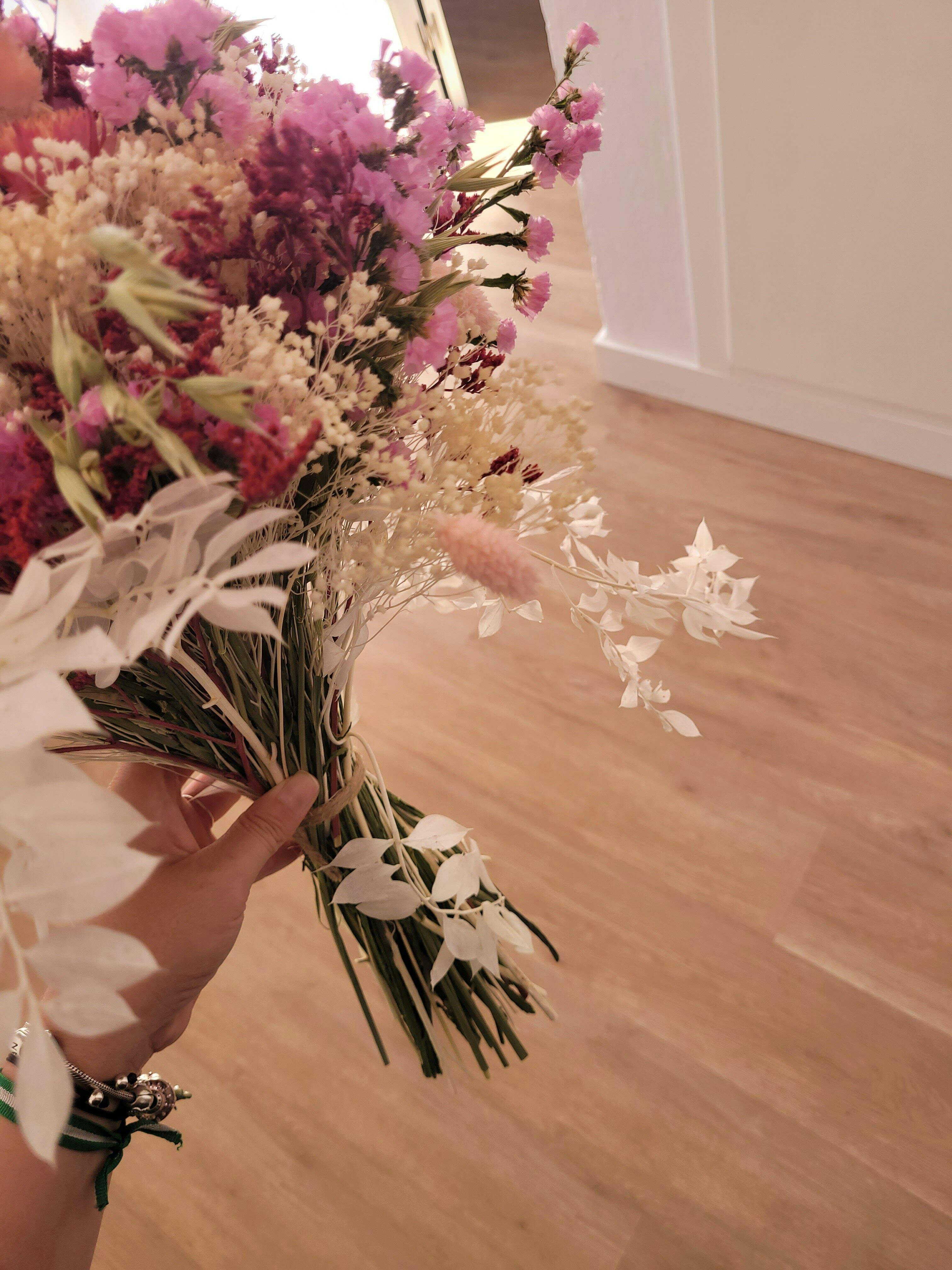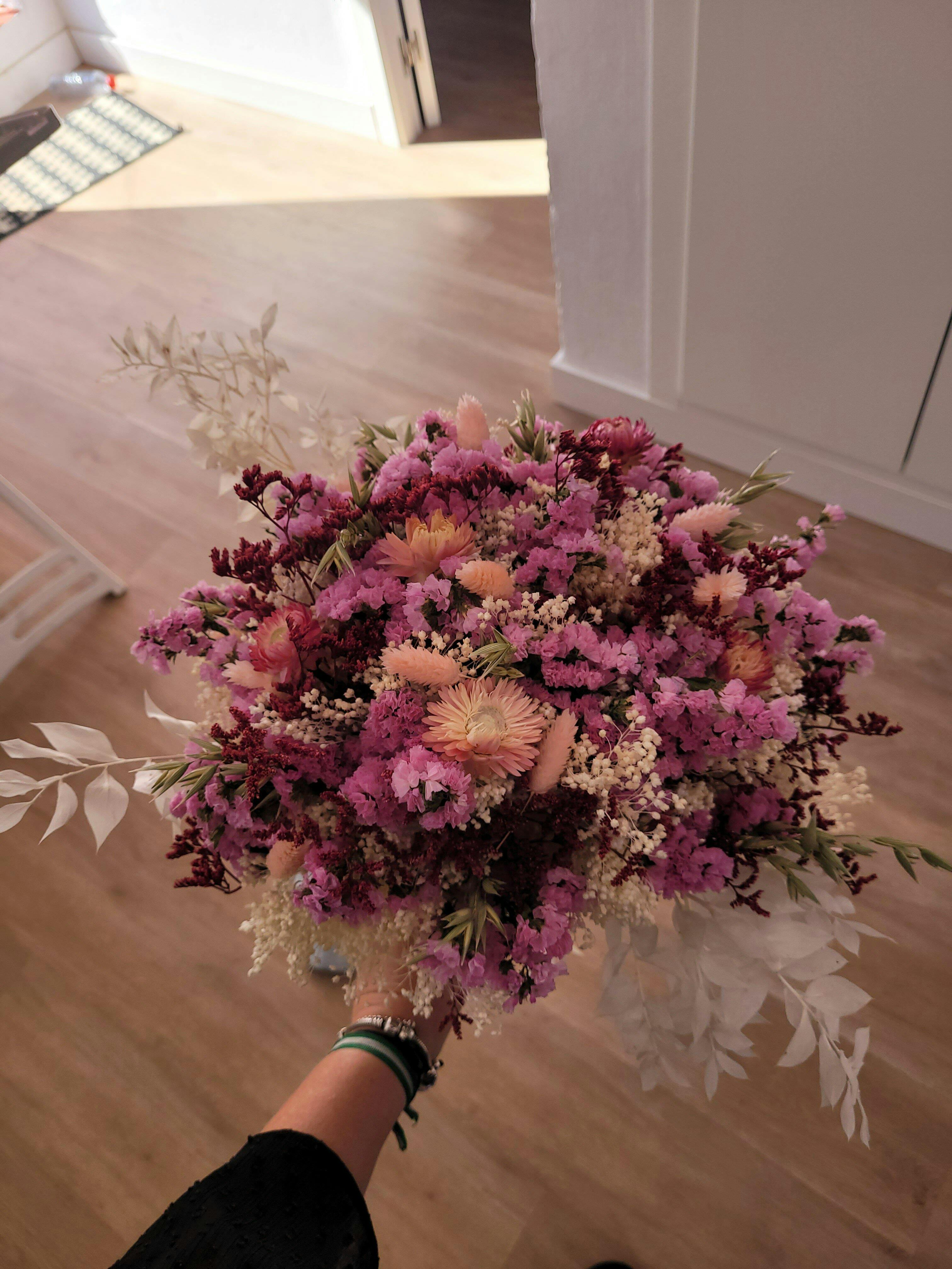 Ramo hecho a mano combinando flores secas y preservadas